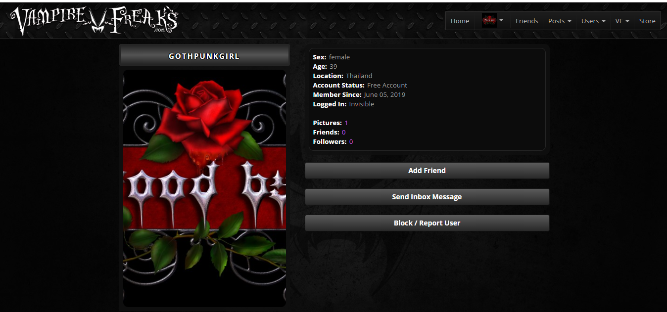 VampireFreaks wasn’t the same as it used to be. I remember joining for the first time when I was 14 years old, which was a decade ago. The users were a different group of people. I would say they were more into the old school goth music. Now, the site became a completely different place. I get asked for my personal email and instant messaging username from people who don’t have a profile picture.